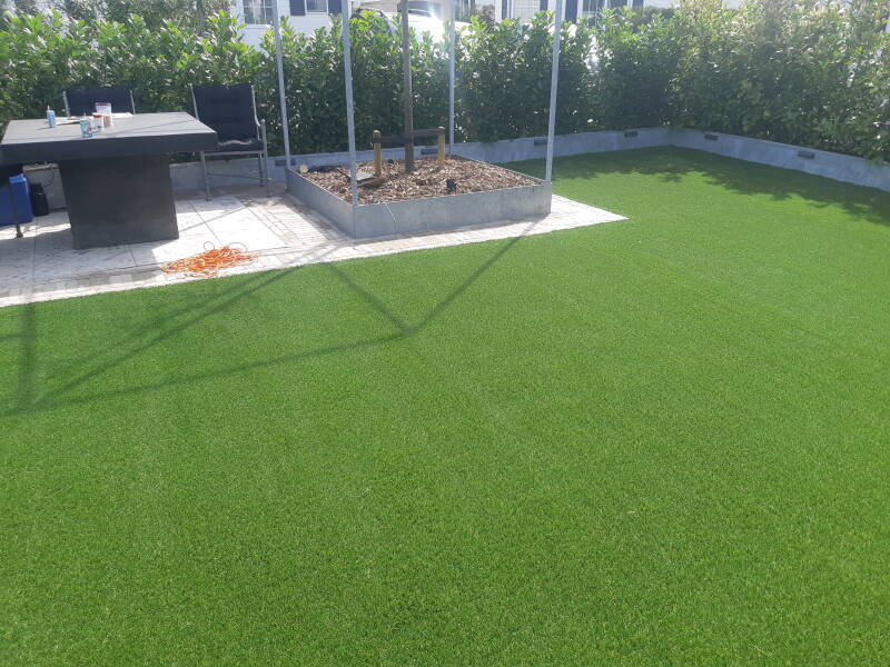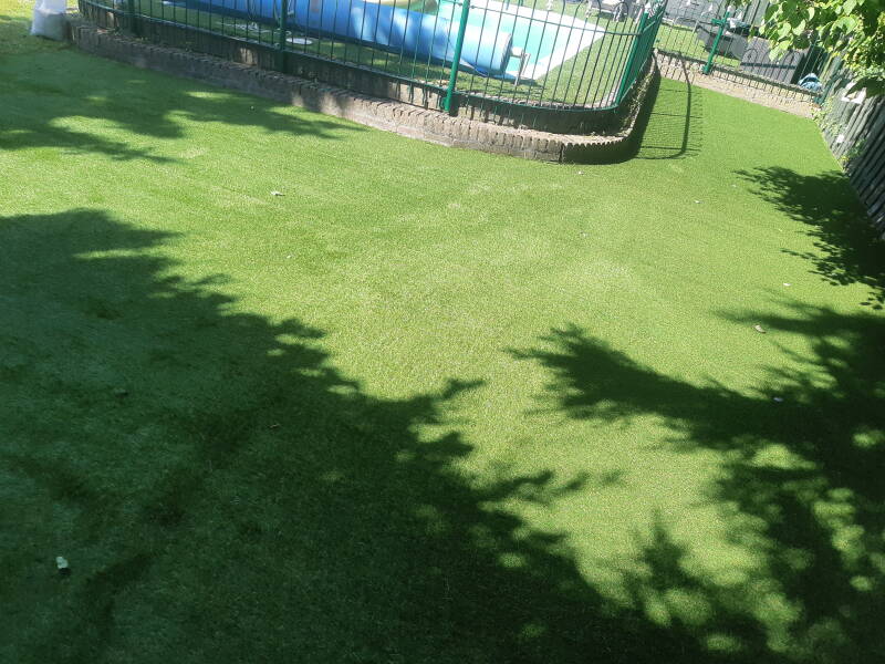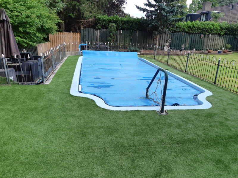 rond het zwembad hadden we al kunstgras aangelegd