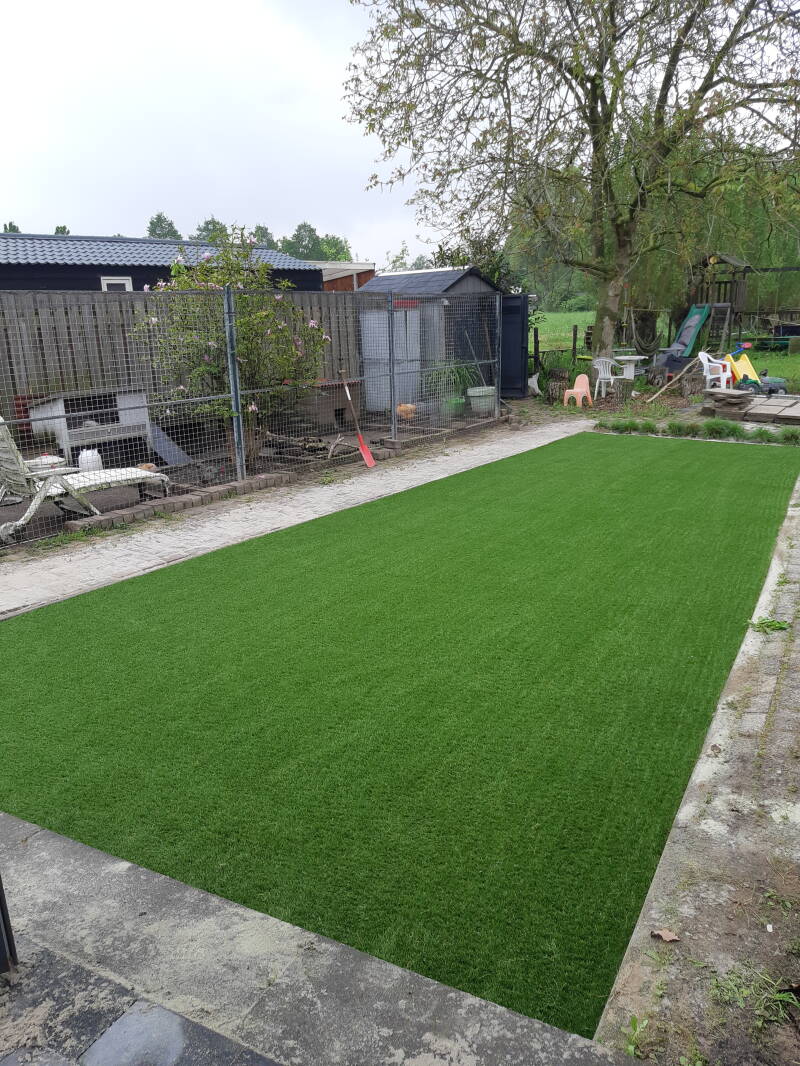 Op de foto hierboven hebben wij alleen het kunstgras met toebehoren geleverd.
