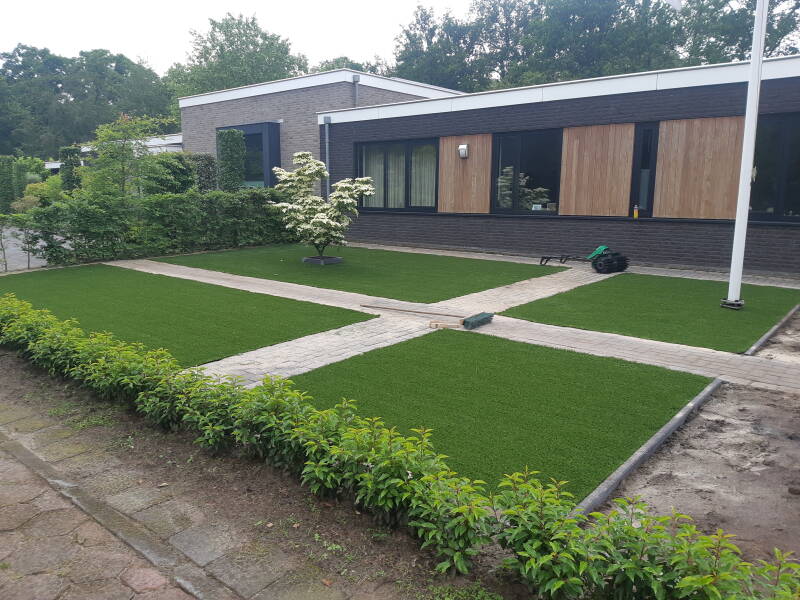 Naast kunstgras kunt u ook voor echt gras en bestrating aanleggen bij ons terecht.