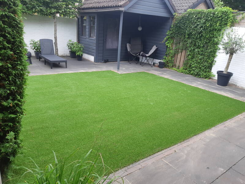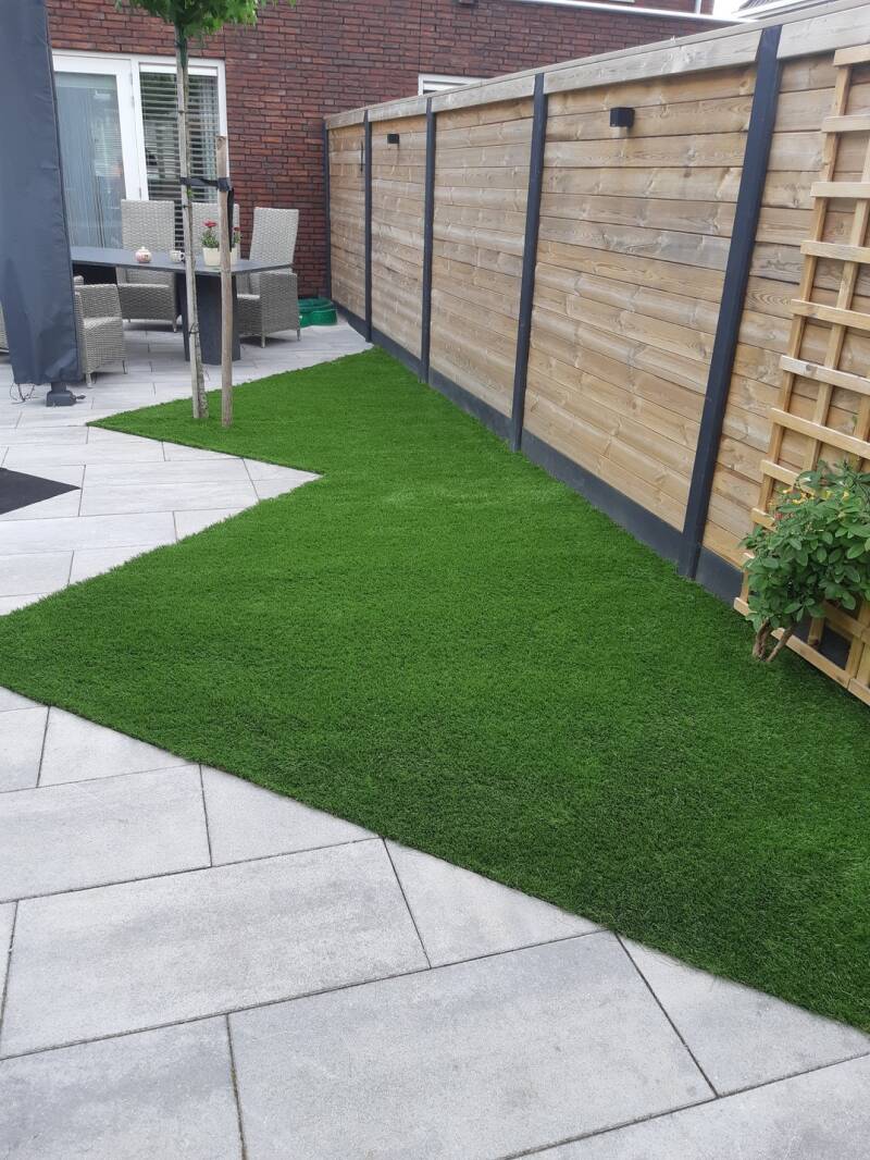 Op de foto hierboven hebben wij het kunstgras aangelegd.