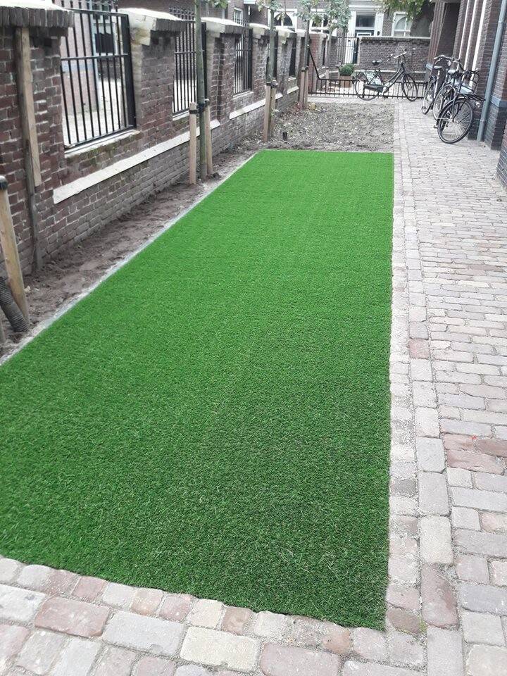 wij hebben het kunstgras gelegd en de kantopsluitingen geplaatst.
